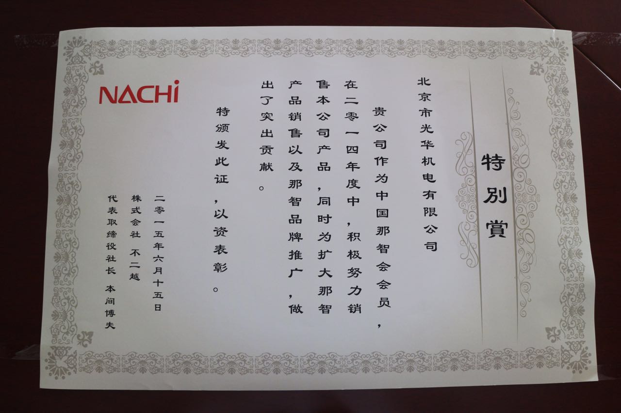 北京市光華機電有限公司是專業銷售進口軸承、液壓、刀具、機器人的商貿企業。主要經銷NACHI、NTN、FAG、KOYO等優質名牌軸承。是日本株式會社不二越NACHI品牌中國特約經銷商。2006年起在上海和廣州成立分公司,服務中國市場。